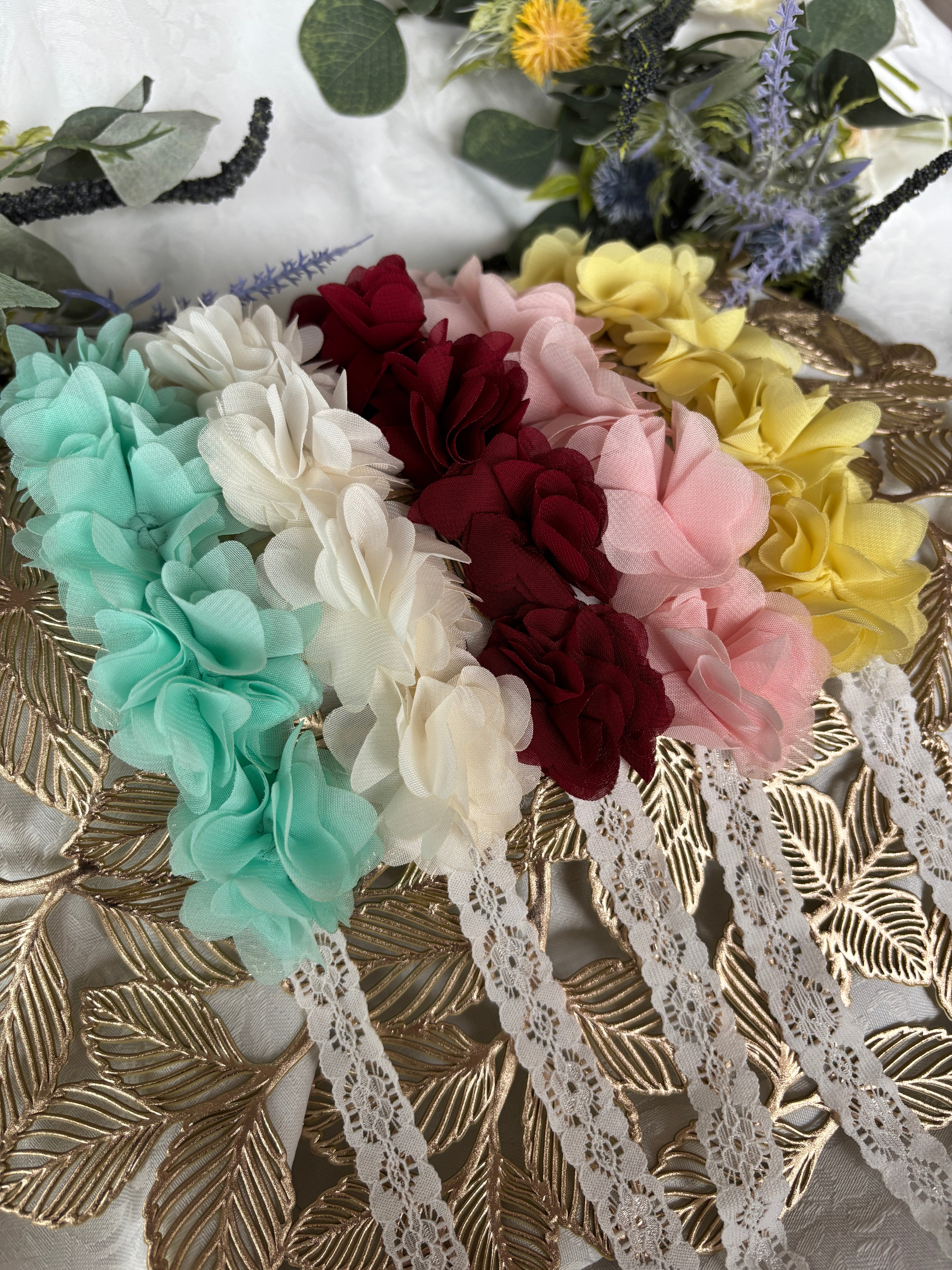 ・実際の商品の色合いは、モニターの設定によって異なる場合があります。 袋から取り出したときに、フラワーモチーフが折れていることもあります。