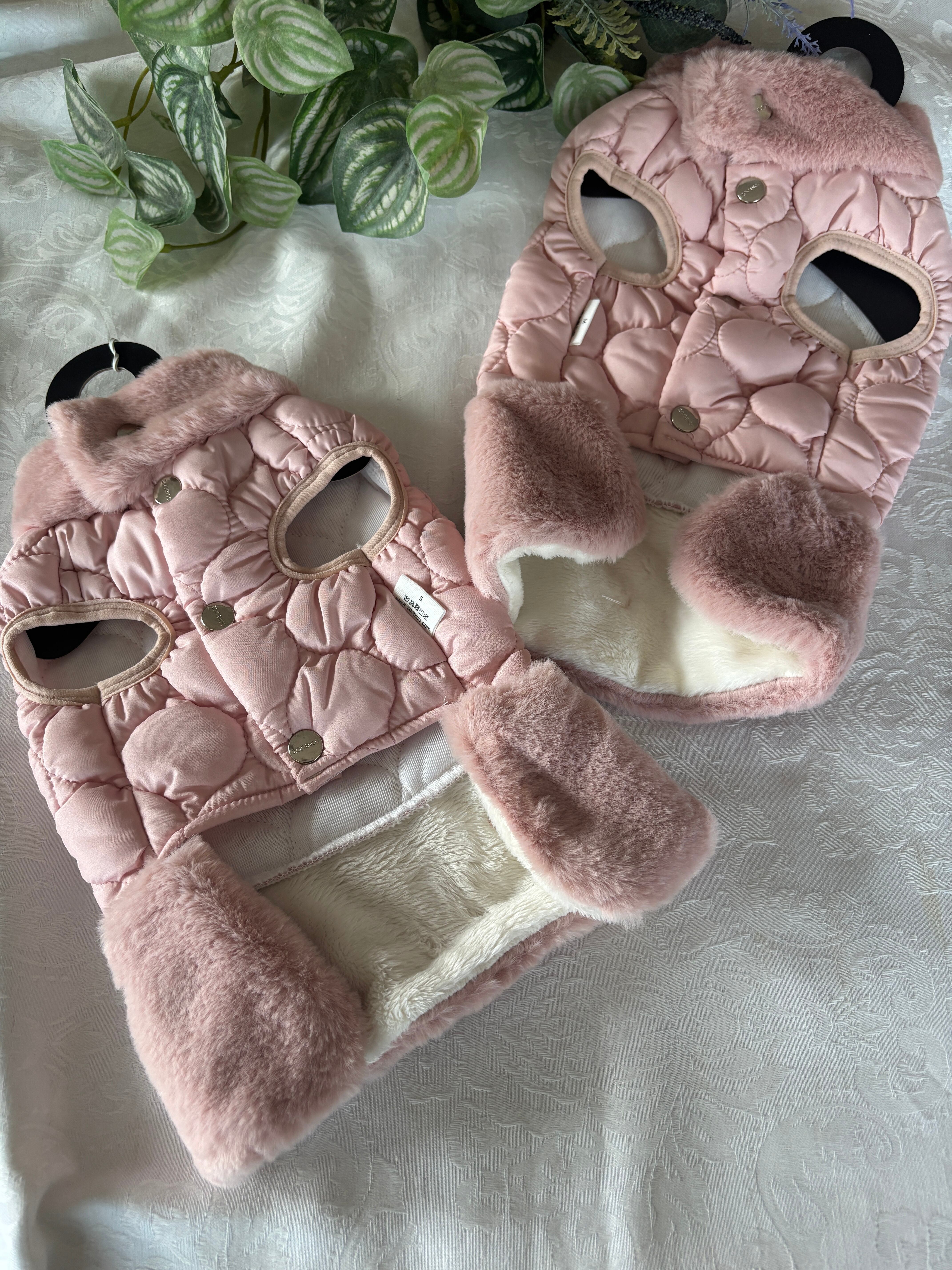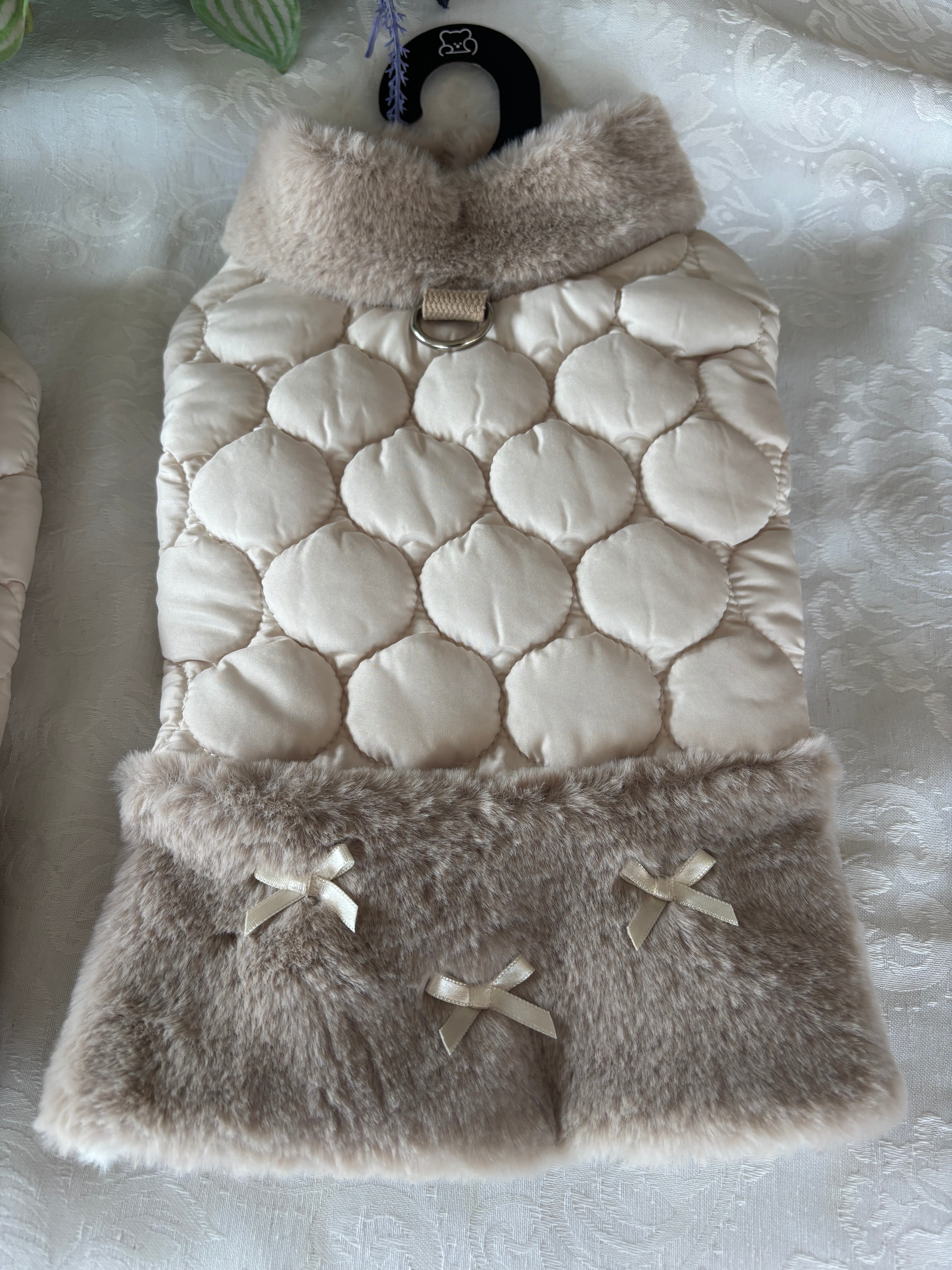 ウインターセール!ペット用 冬仕様 キルティングコートフェイクファー&リボン