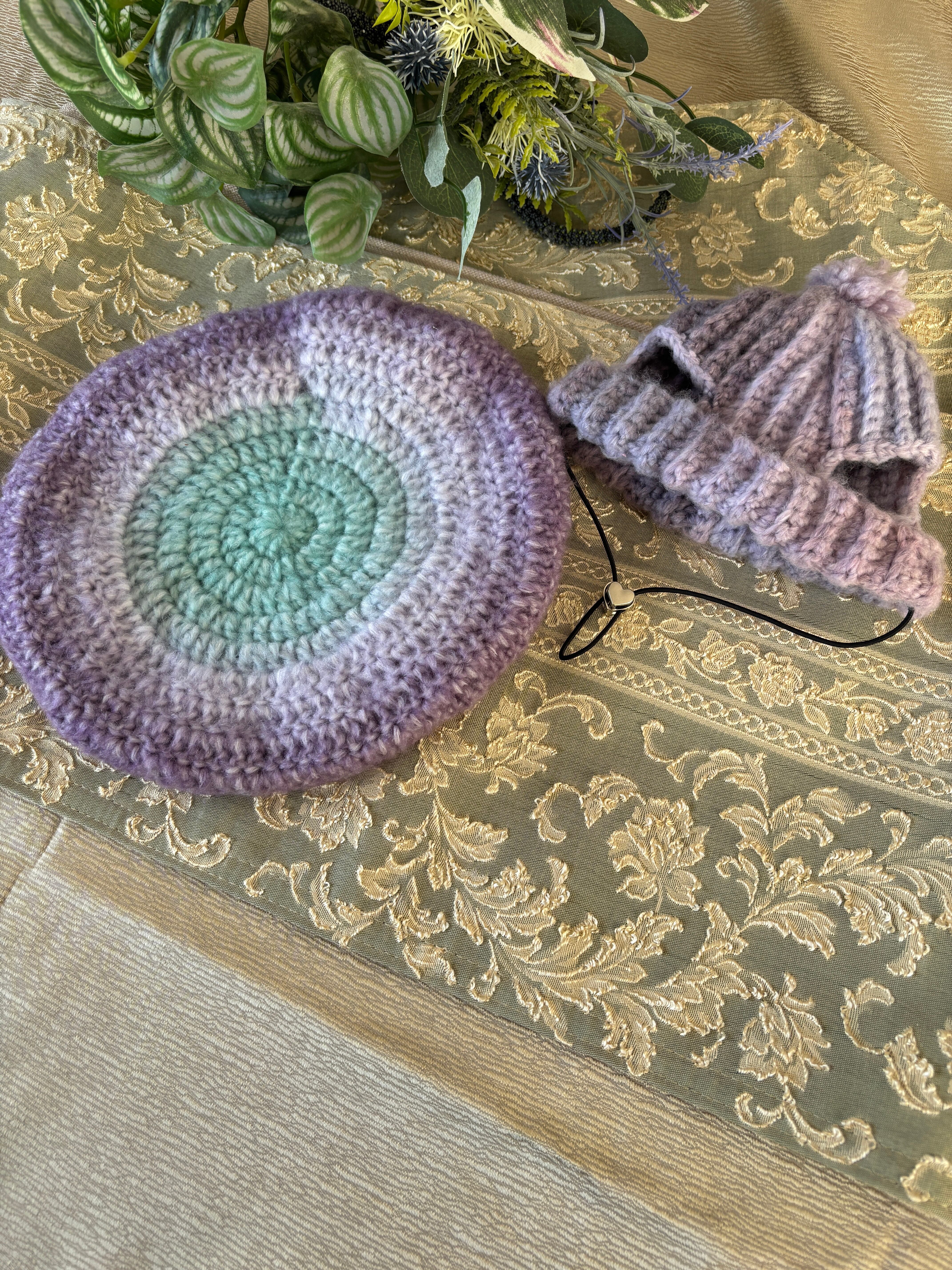 ・サイズはベレー帽が直径約25センチ、ワンちゃん用が直径約117センチです。
